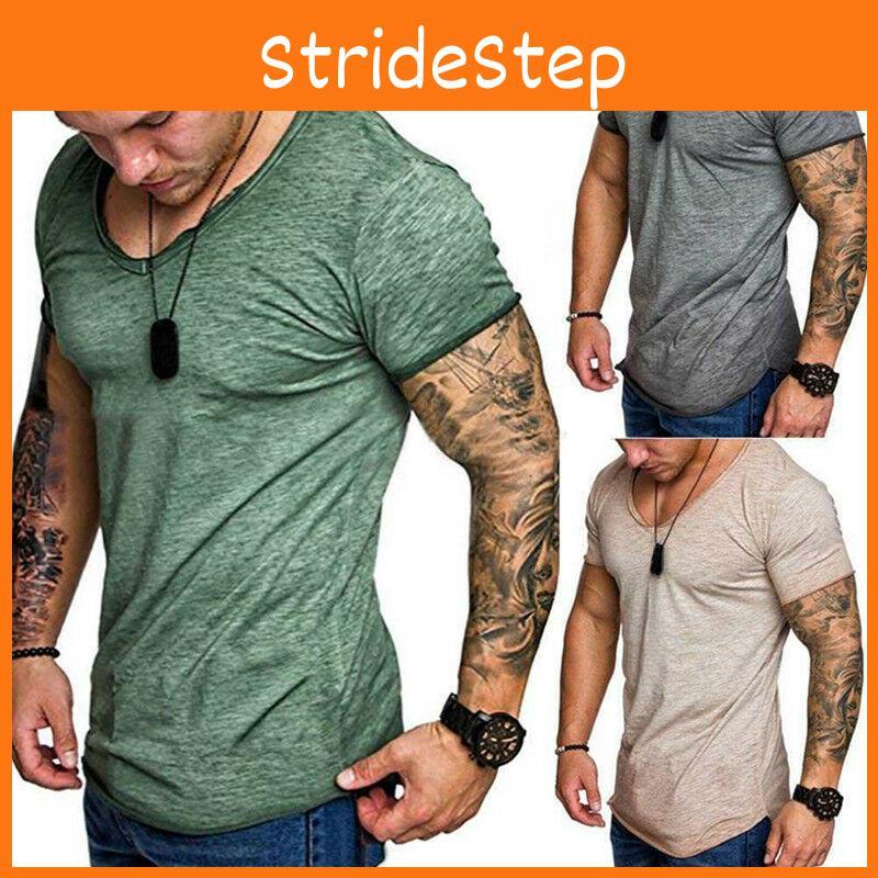 Fashion Men's Casual Tops T-Shirt Short Sleeve V-Neck Slim Fit Muscle Shirts Tee