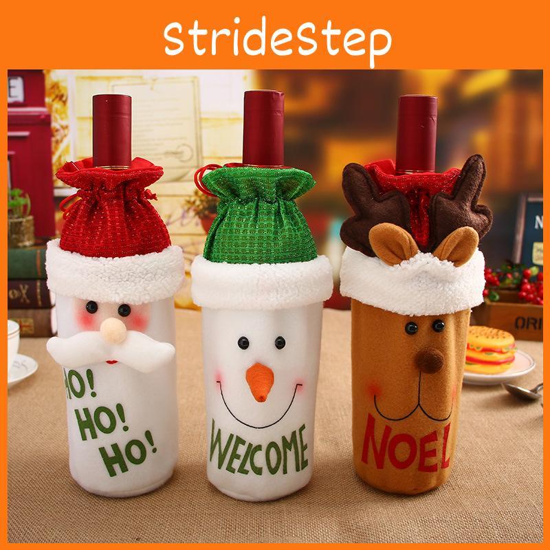 Charming Red Wine Bottle Cover Bags With Santa Claus And Snowman For Holiday Cheer