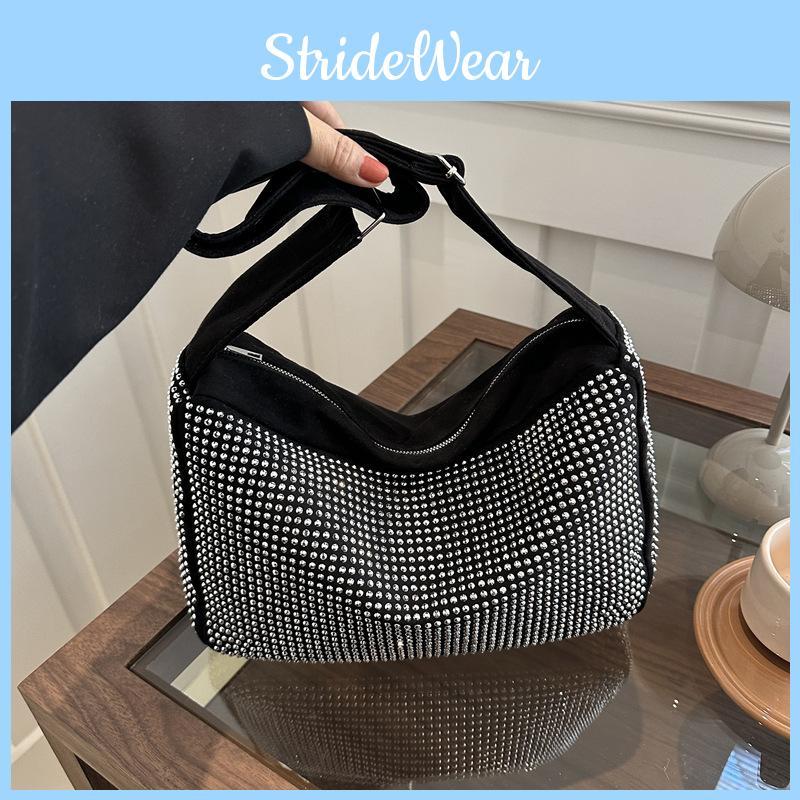 What truly sets this handbag apart are the trendy rhinestone embellishments that provide just the right touch of glamour. These eye-catching details catch the light beautifully, making it a standout piece that draws compliments from everyone around you. The stylish outer pocket also serves as a convenient space for storing items you need quick access to, making it as functional as it is fashionable.