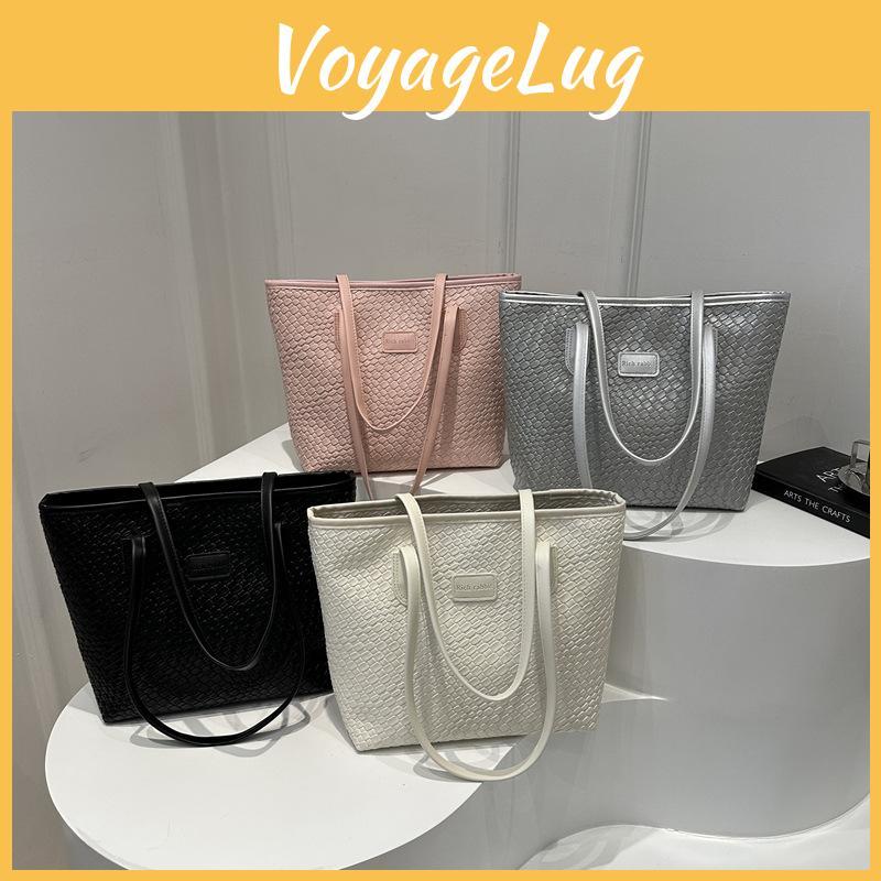Urban Chic Large Capacity Tote Bag For Women 2024 Summer Woven Design Versatile Shoulder Bag