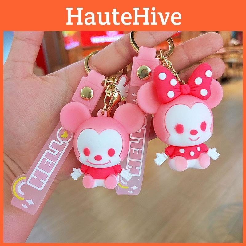 Adorable Cartoon Mickey Mouse Keychain With Cute Pink Bow Silicone Accessory