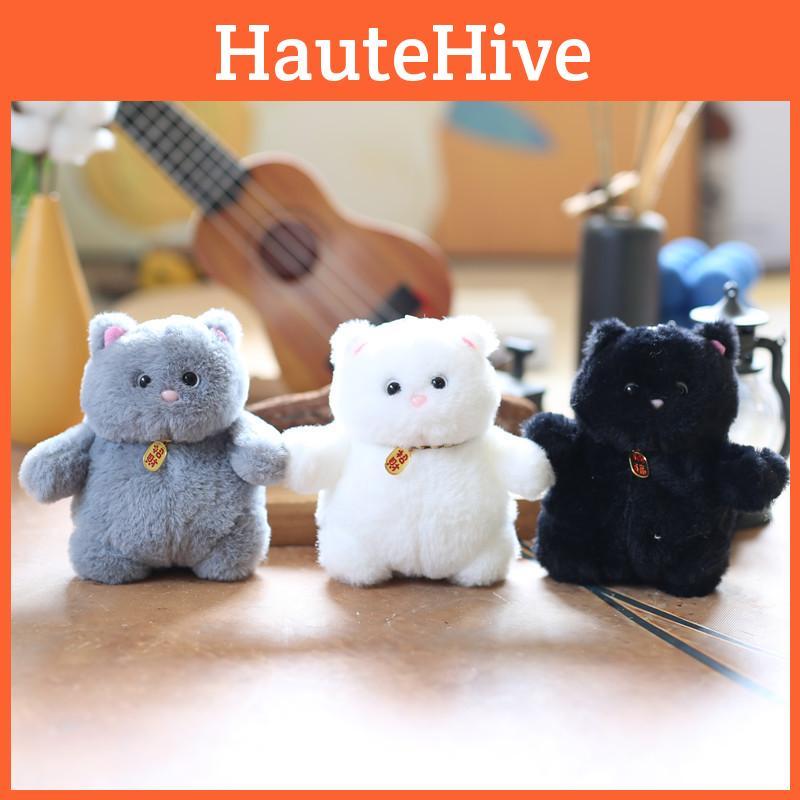 Charming White Black Grey Cat Plush Keychain Soft And Cuddly For Bags