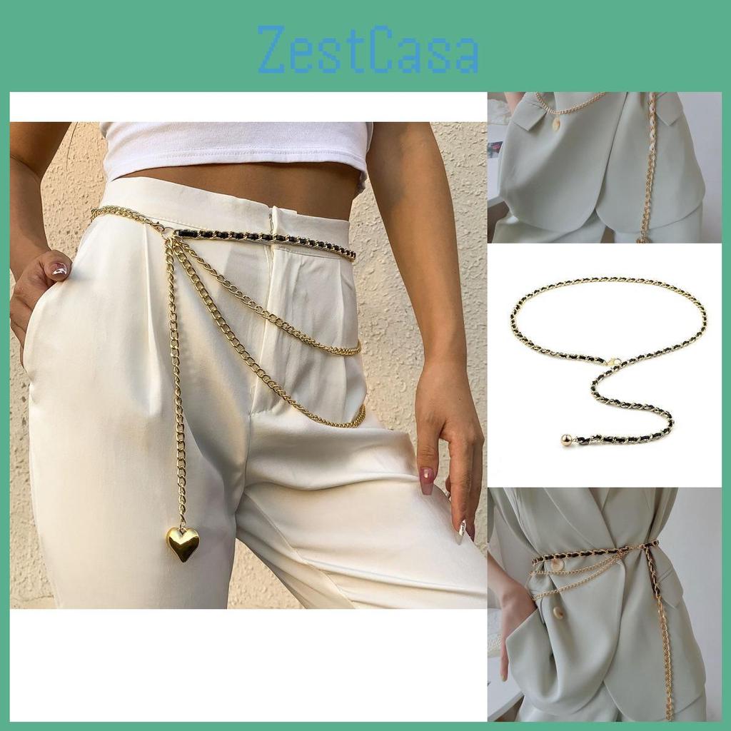 Available in a variety of stylish colors, including the chic three-chain fabric belt in black and white gold, as well as the heart-shaped variations in gold and silver, this waist chain is perfect for those who appreciate individuality and elegance. The three-chain design adds depth and texture, creating a visual feast that draws the eye and accentuates your waist beautifully. Whether paired with a flowing dress, a sharp shirt, or even layered over a sleek jacket, this accessory promises to bring out the best in your wardrobe.