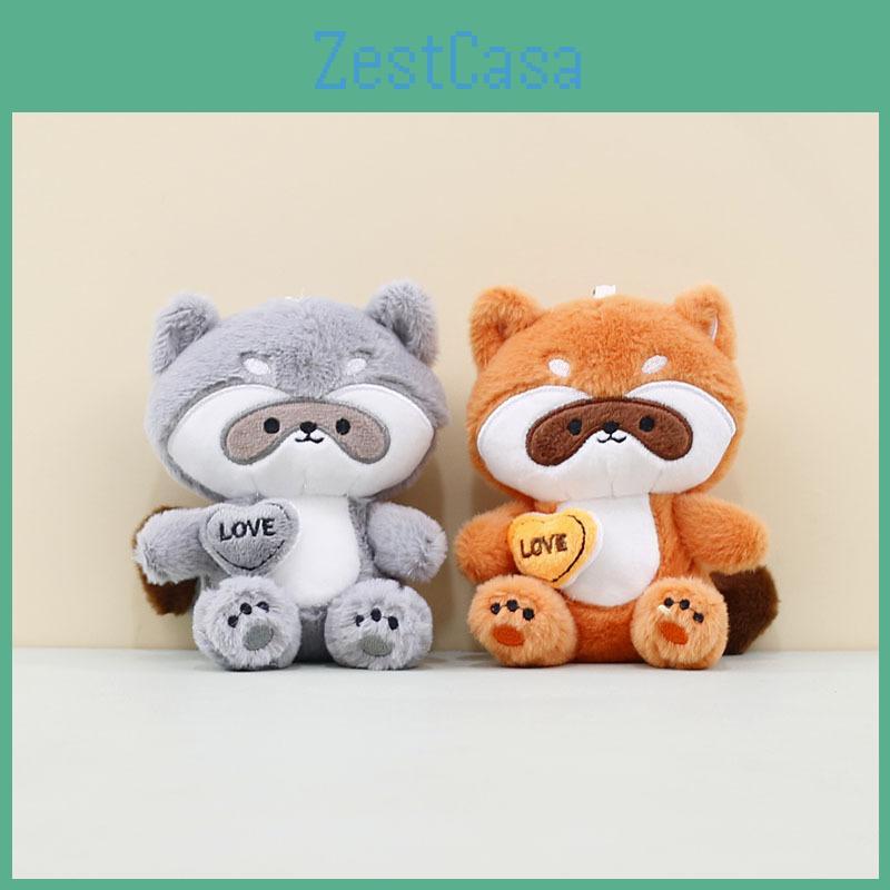 Cute Orange Raccoon Plush Toy Keychain Soft Pp Cotton Stuffed Animal Doll