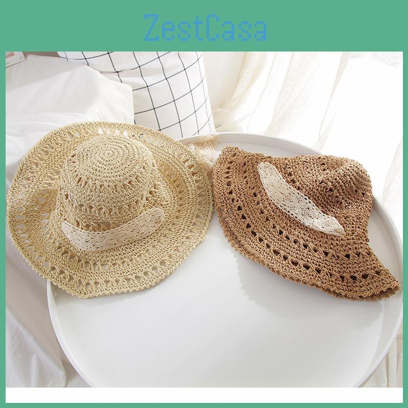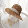 Casual Hand Crocheted Lace Elements Women's Sun Hat With Big Brim For Beach Holiday