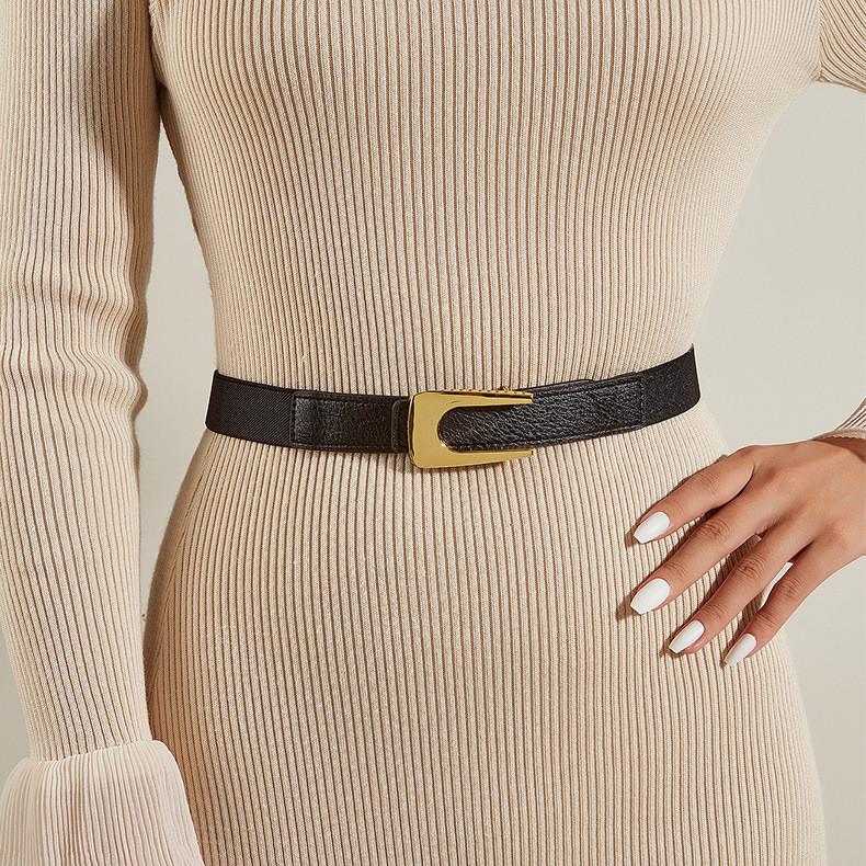 This fashionable belt accessory adds a touch of elegance and delicacy to your clothing. This belt is the perfect addition to your wardrobe. The alloy belt buckle adds a fashionable appearance, while the buckle ensures a safe and comfortable fit.