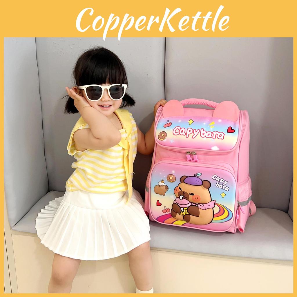 Childrens School Backpack With Cartoon Capybara Pattern Features For Grade 3-4 Students