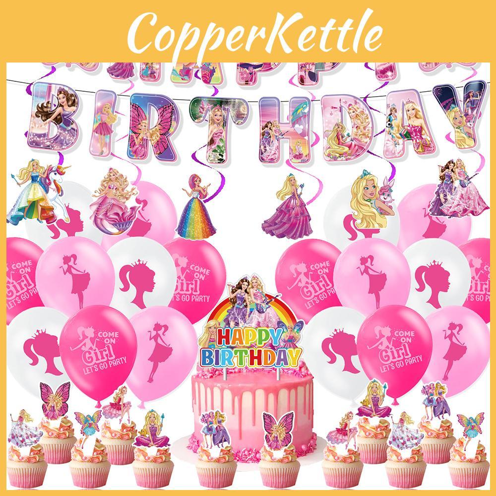 Barbie Birthday Party Balloon Set With Banner 4 Pieces Includes Banner 18pcs Balloons 12pcs Small Inserts 1 Large Insert