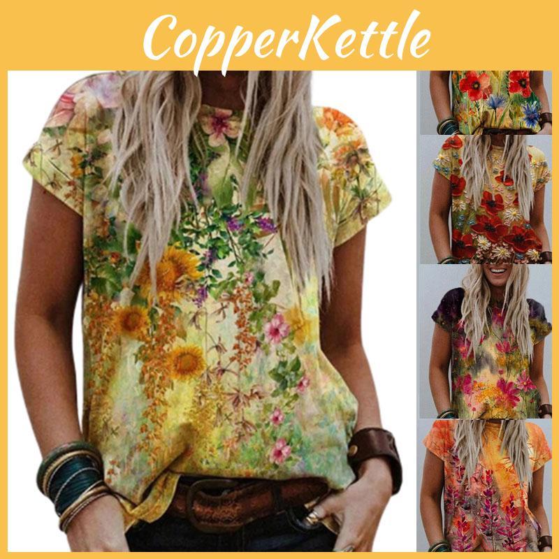 Women's Floral Print Short Sleeve Tops Featuring Soft Material For Ultimate Comfort