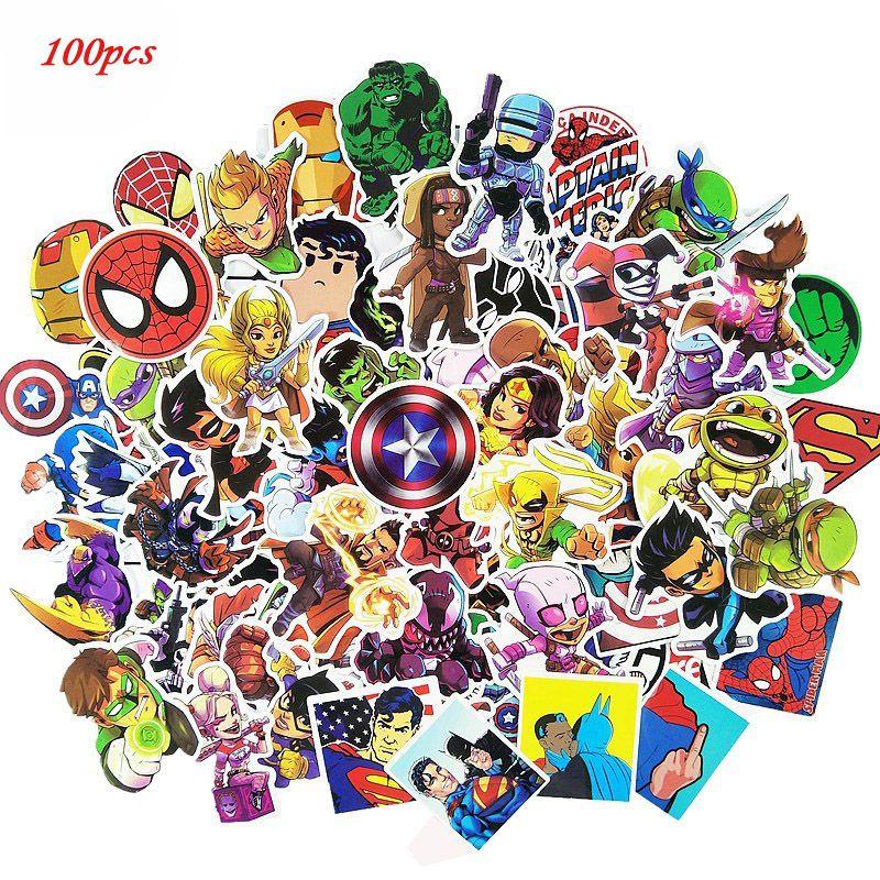100pcs Multicolor Super Hero Stickers For Luggage Laptop Skateboard Bicycle Car