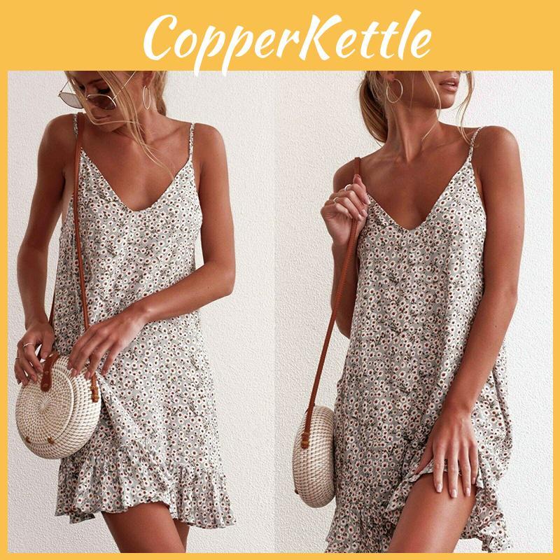Womens Boho Sleeveless V Neck Floral Sundress Ladies Summer Beach Shirt Dress