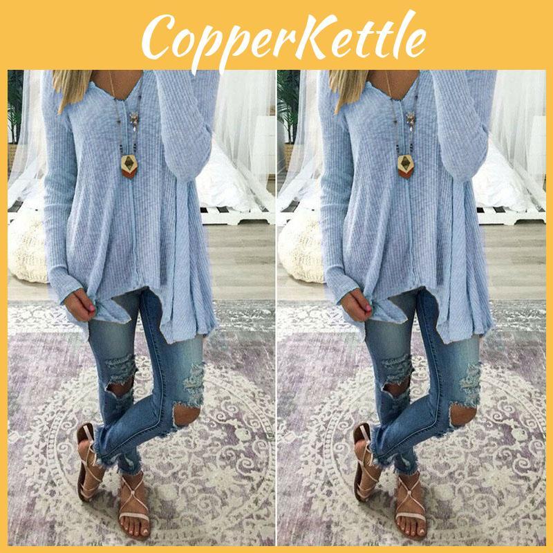 Elegant Plus Size Women Long Sleeve Loose Blouse With Baggy V Neck Tunic T Shirt