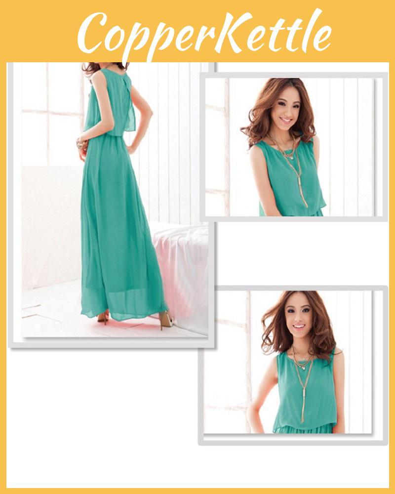 Summer Fashion Women Round Neck Casual Color Dress Chiffon Party Pure Sleeveless