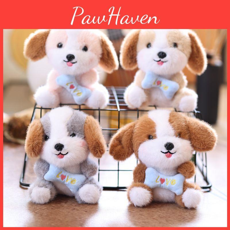 This soft dog stuffed doll, designed for kids gifts and bag decorations, features a realistic dog shape crafted from ultra-soft short plush fabric. It is filled with PP cotton, providing a plush and lightweight feel, and measures approximately 13 cm tall. Ideal for children's toys, nursery decor, or personal accessories. Wipe clean with a damp cloth for maintenance.