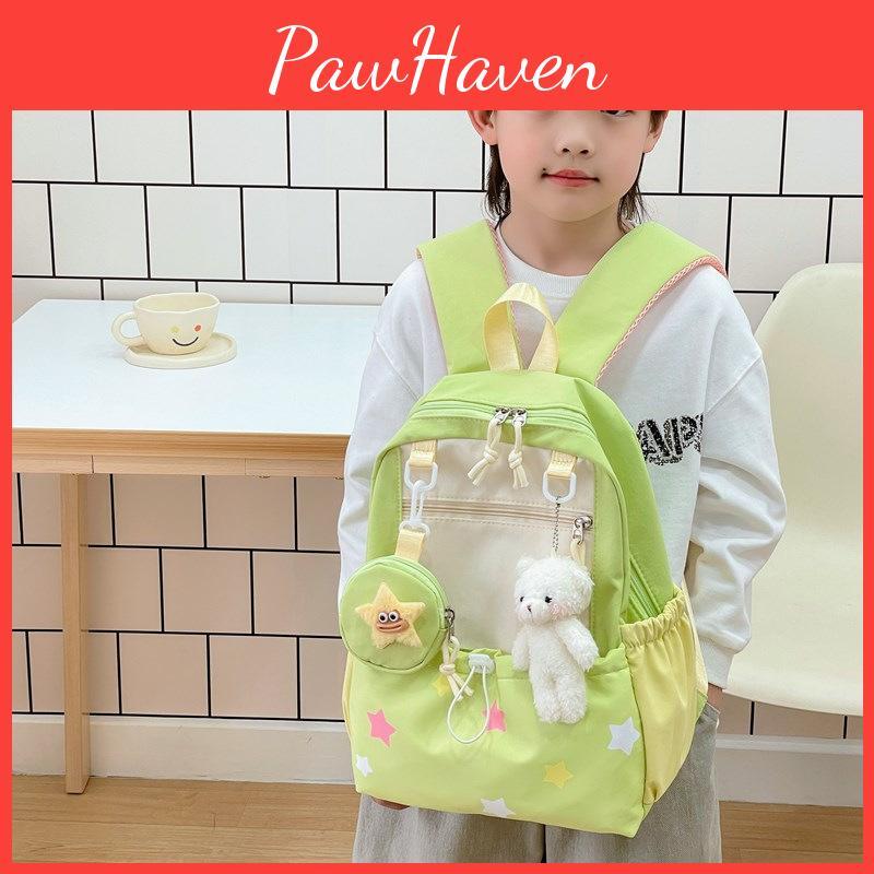 This children's kindergarten backpack features a playful cartoon style crafted from durable nylon material, measuring approximately 34CM in height, 27CM in width, and 11CM in depth. The backpacks lightweight design supports young students during school activities, with a comfortable curved shoulder strap system for ease of carrying. Made with polyester lining and reinforced stitching, it resists daily wear.