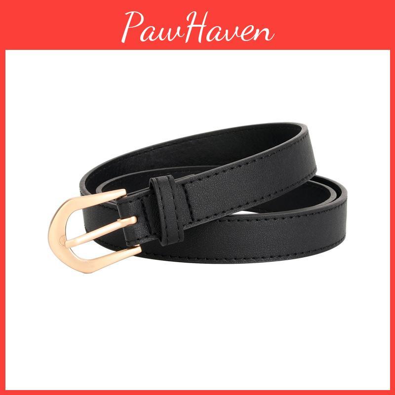 This women's faux leather belt features a durable alloy buckle . Crafted from high-quality synthetic leather, it offers a sleek, elegant look suitable for both work and leisure attire. Its simple pin closure ensures easy, secure fastening. Ideal for daily wear, it enhances casual and professional outfits. Wipe clean with a damp cloth to maintain its appearance.