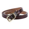 This women's leather belt features a slim design crafted from two-layer genuine cowhide, measuring 1.5cm wide and available in 105cm and 115cm lengths. The alloy buckle with a horizontal clasp provides secure fastening and a sleek appearance. It complements daily outfits and enhances casual or formal attire. Easy to maintainwipe clean with a damp cloththis belt is ideal for everyday wear.