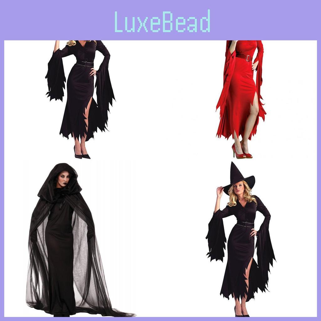 Stunning Design: This captivating red witch outfit features an eye-catching design that combines elegance and spookiness, perfect for making a statement at any cosplay event or Halloween party.