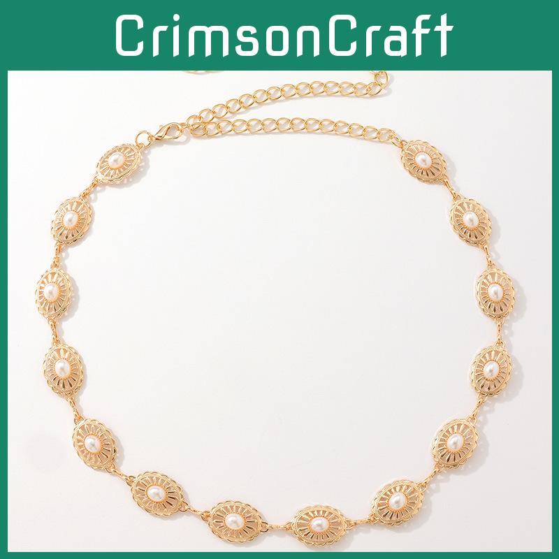 Bohemian Woman Metal Waist Chain With Pearl Embellishments For Summer Fashion Accessory