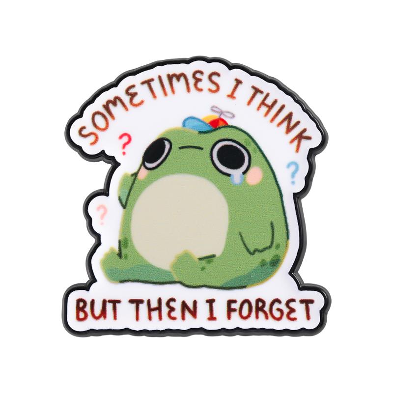 Sometimes I Think But Then I Forget Enamel Pin Cartoon Frog Pun Brooches Lapel Badges Funny Animal Jewelry Gift for Kids Friends