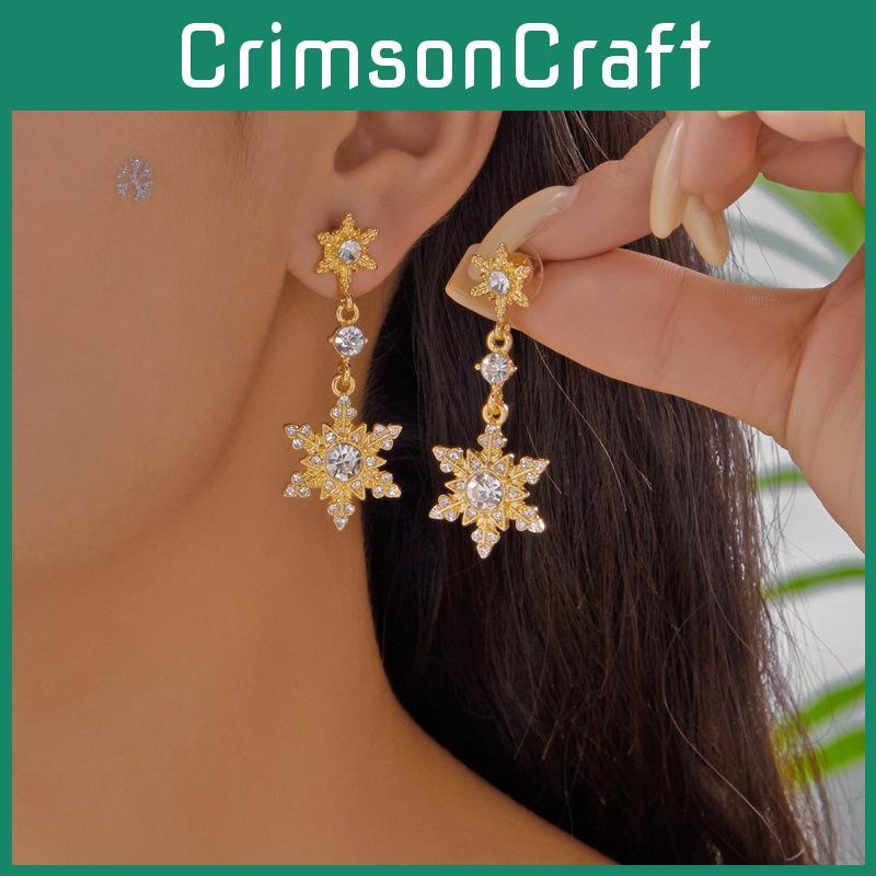 Snowflake Pendant Earrings With Zirconia Drop For Women Seasonal Jewelry