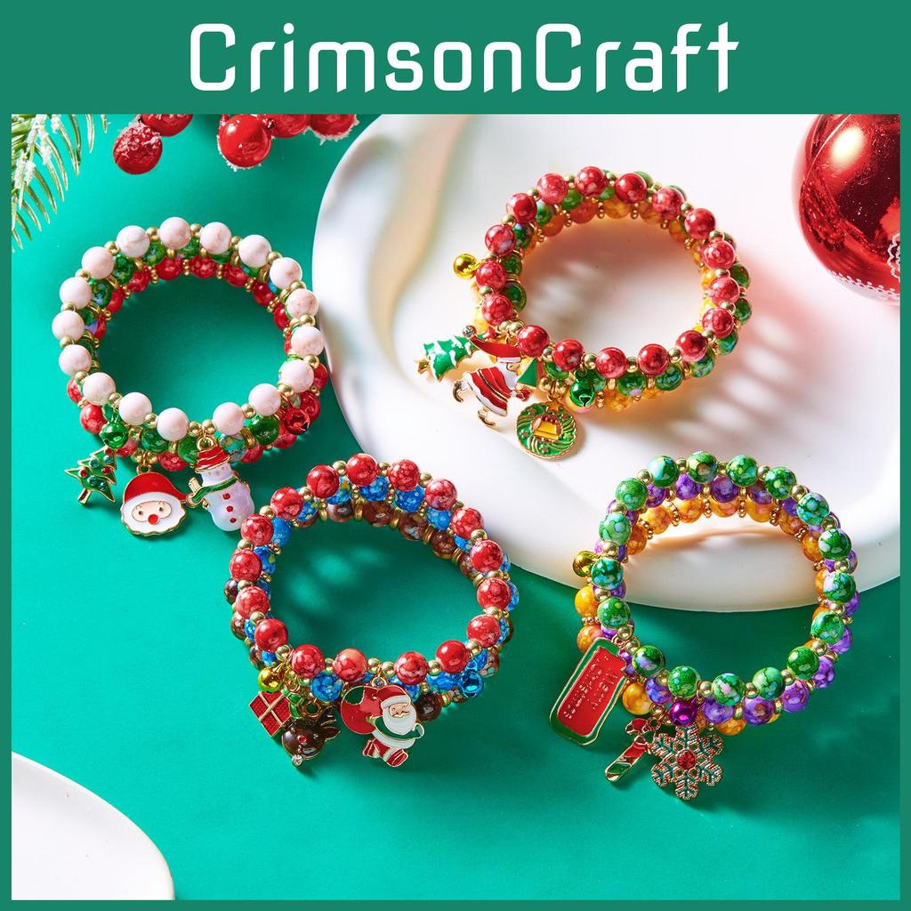 Christmas Tree Santa Snowman Beaded Bracelets Set For Women Festive Gift Idea