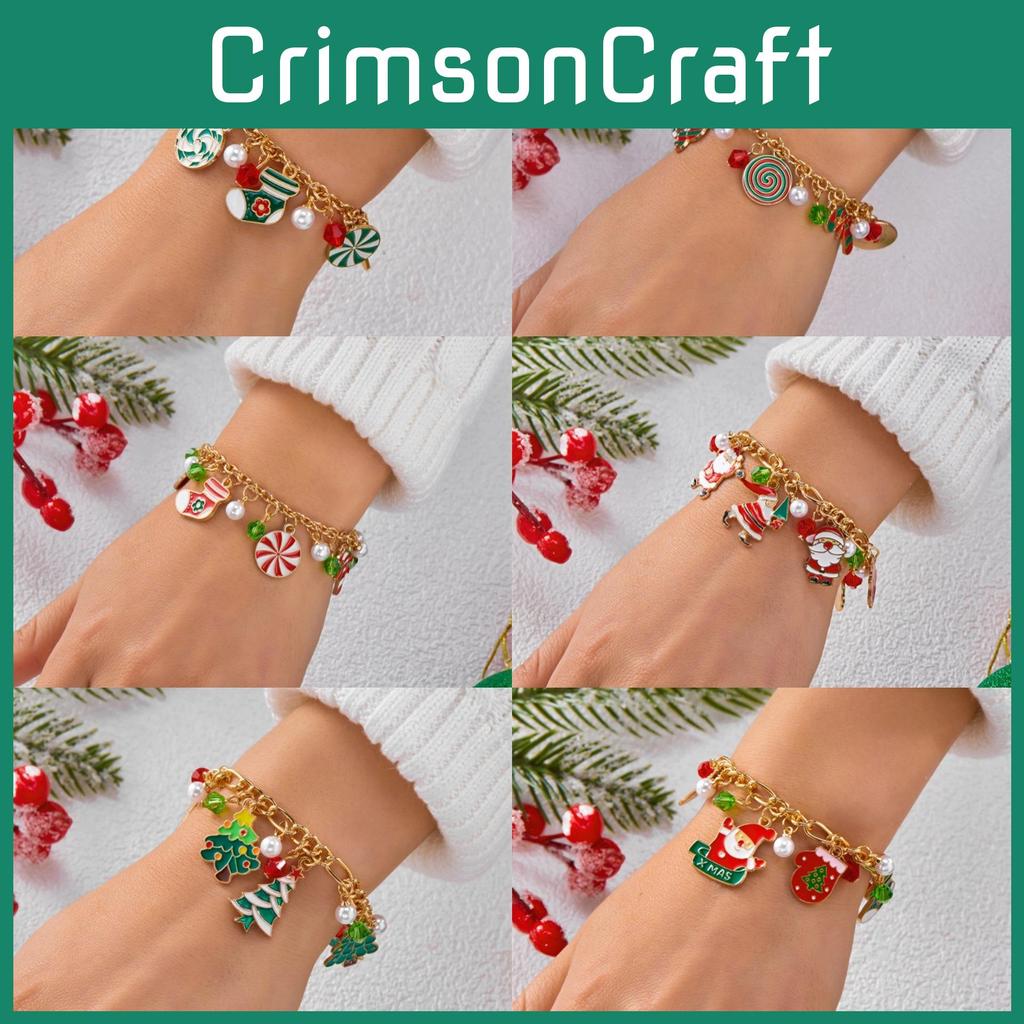 Christmas Santa Pendant Bracelets With Multicolor Candy Charms For Holiday Gift