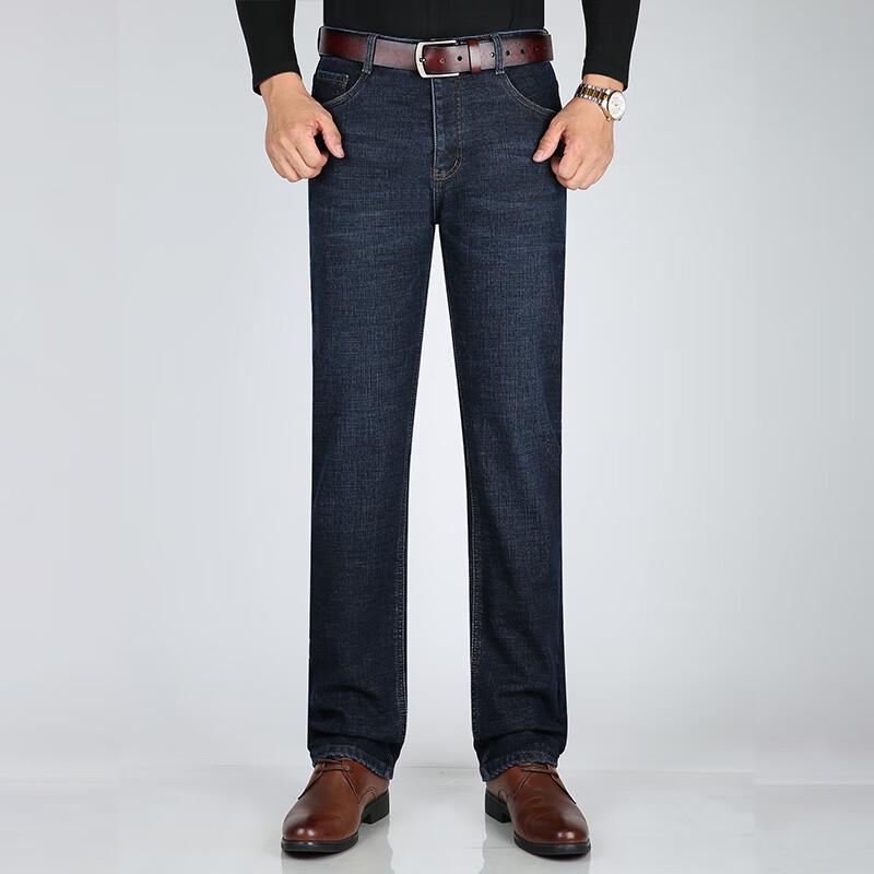 ROMON Men's Winter Fleece-Lined Straight-Leg Casual Jeans