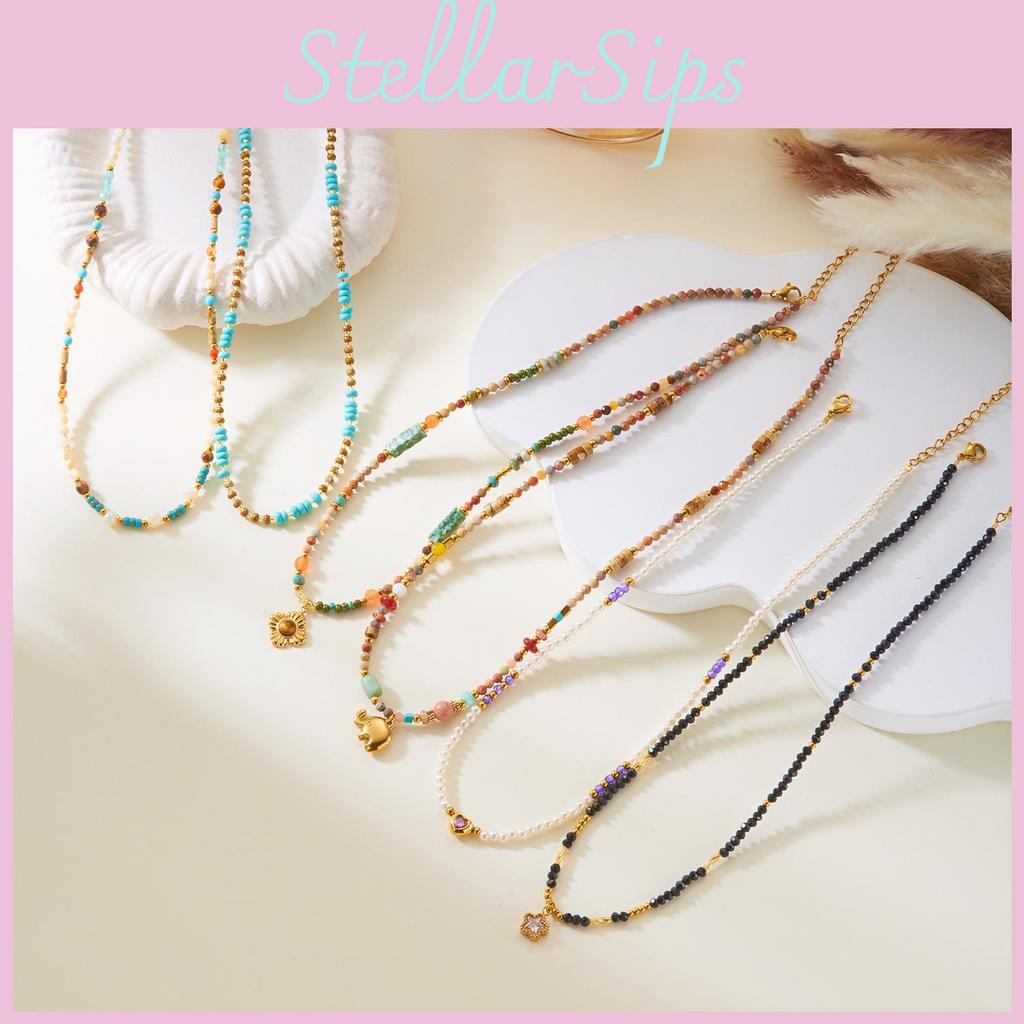 This summer stainless steel jewelry features a sunflower pendant complemented by turquoise beads, creating a fresh and elegant look. Crafted from durable stainless steel with a vacuum plating process,The multi-layer design enhances its fashion appeal. Ideal for casual outings or vacation wear, it adds a touch of natural beauty to any outfit. Wipe clean with a soft cloth to maintain its shine.