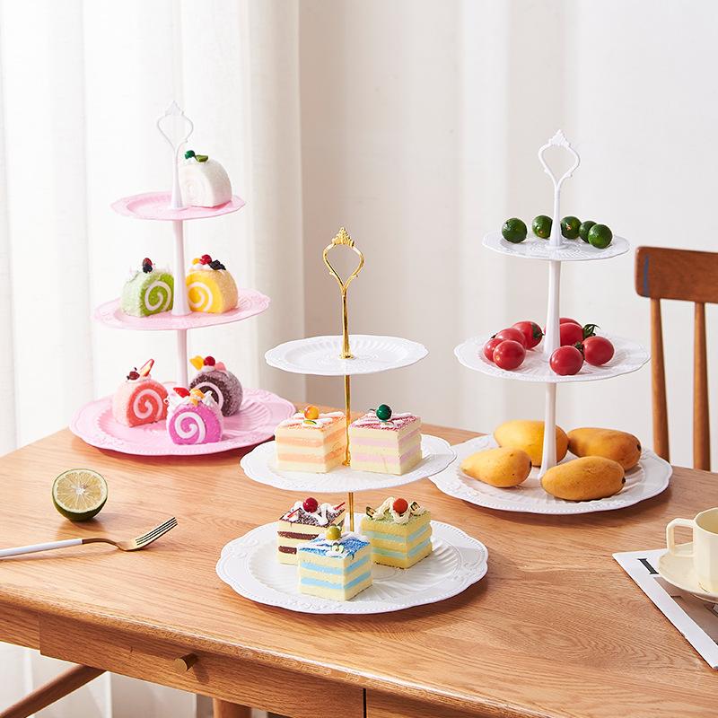 3 Tiers White Plastic Cupcake Stand Dessert Stand Tiered Serving Trays - Round, Square, Flower
