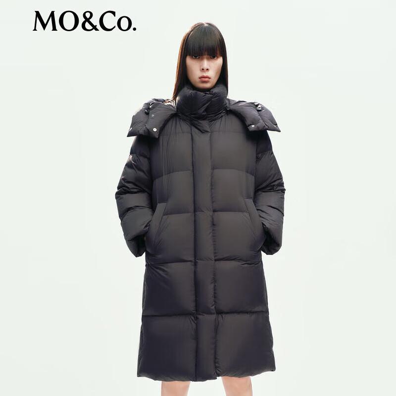 MO&Co. Women's Long Goose Down Jacket with Detachable Hood