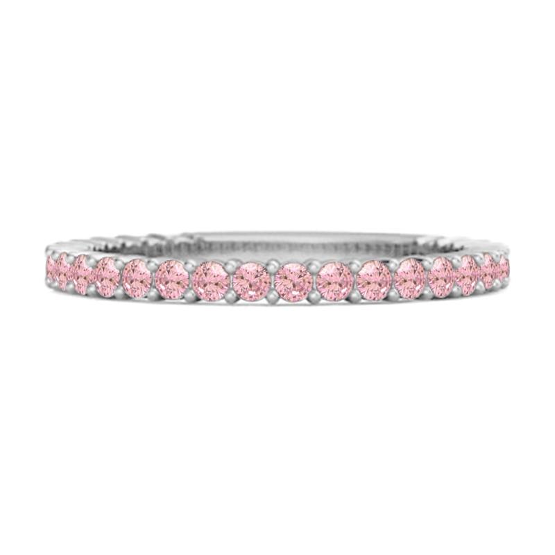 Dainty eternity band in sterling silver with 0.69 ct pink CZ stones. Features a full-circle 2mm round design ideal for stacking or solo wear.