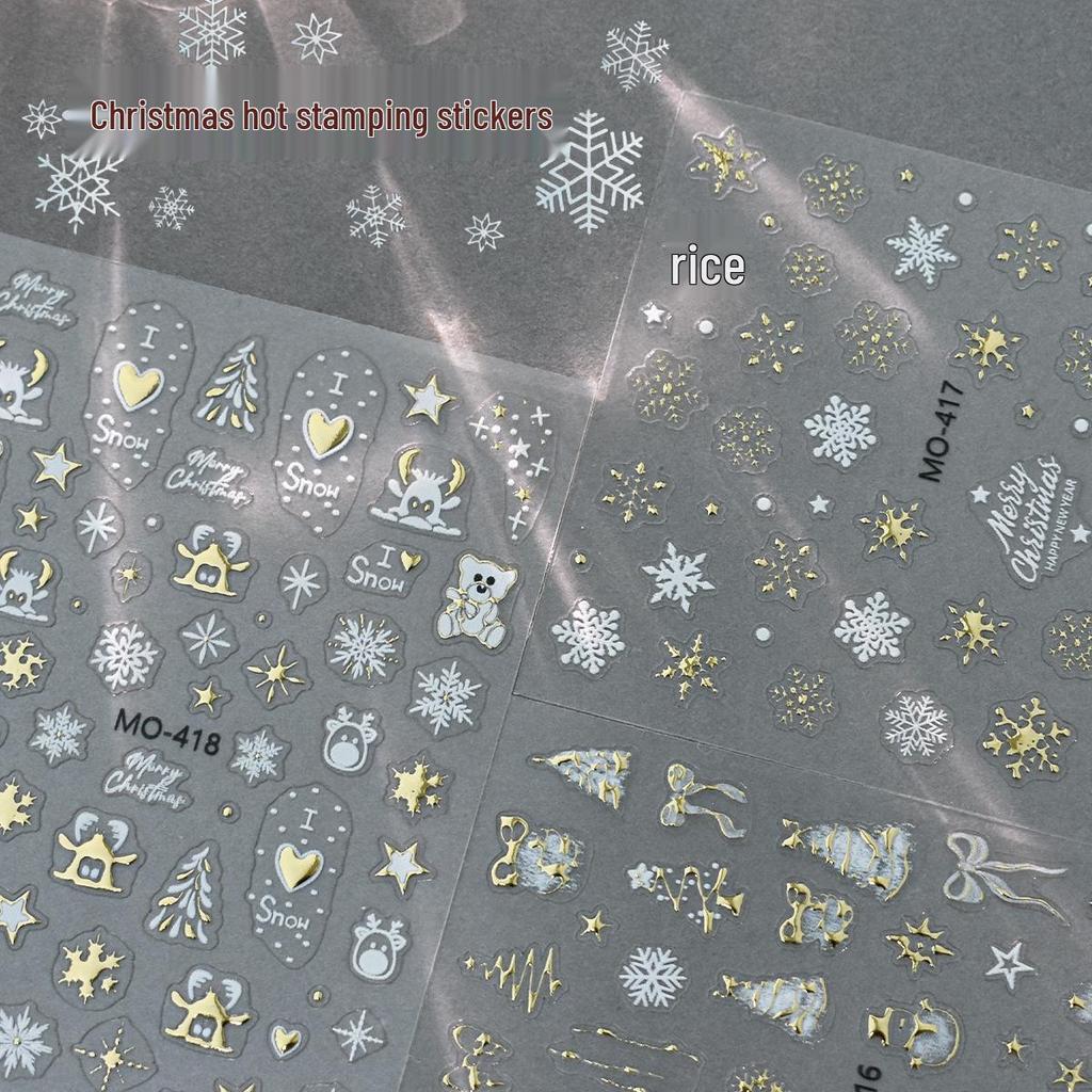 Embossed White Snowflakes Nail Stickers - Autumn/Winter Self-Adhesive Decals for Christmas