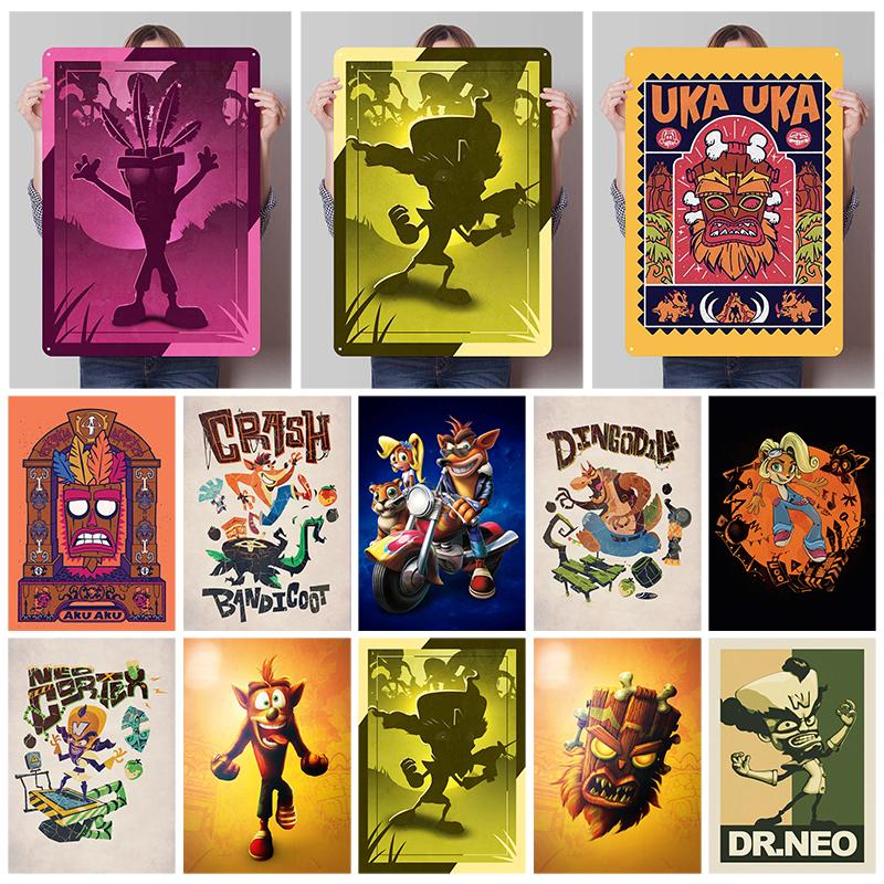 Crash Bandicoot Posters Classic Game Metal Signs Wall Art Mural Custom Tinplate Plaques for Gamers Gaming Room Decoration Retro