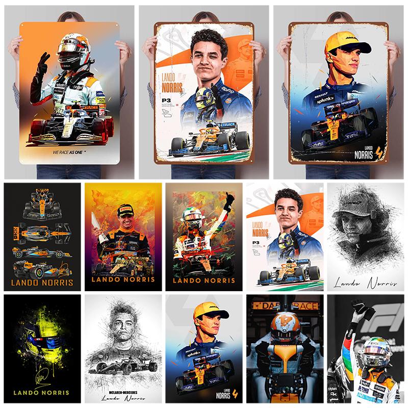 Lando Norris Racer Posters F1 Racing Metal Signs Gaming Room Decoration Custom Tin Plates for Wall Art Decoration Retro Decor