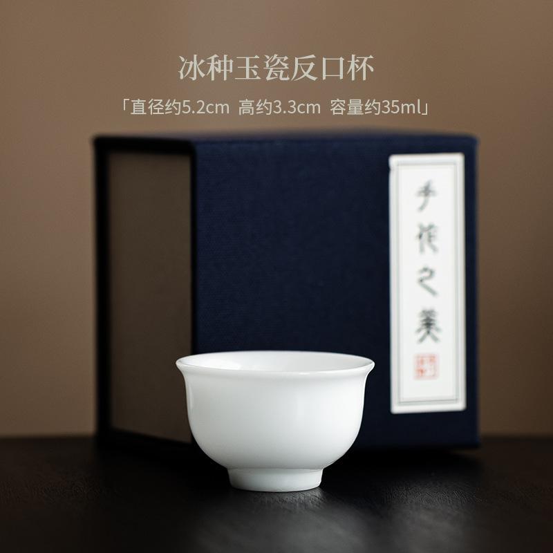 35ml Handamde Iced Jade Porcelain Reversed Cup White Tasting Teacup Mug Small Personal Tea Bowl Master Cup Kung Fu Teaware Gift
