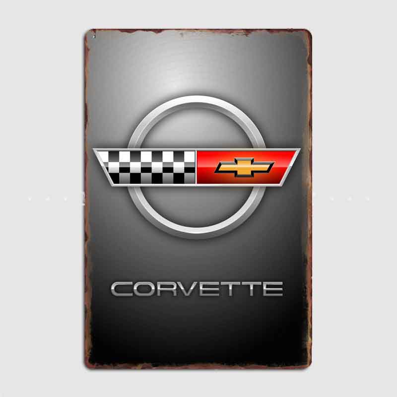 Home Decorative Posters Metal Poster Indoor Decor Corvette Racing Badge C4 Classic Super Sports Car Retro Sign Room Wall Decor
