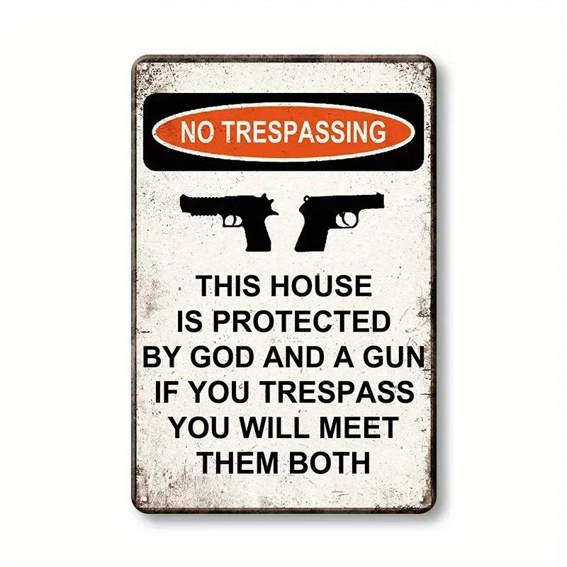 Vintage 1pc Warning Gun Sign This Home Is Protected by God and Guns Rust/Fade Resistant, Easy To Install Indoor/Outdoor Use