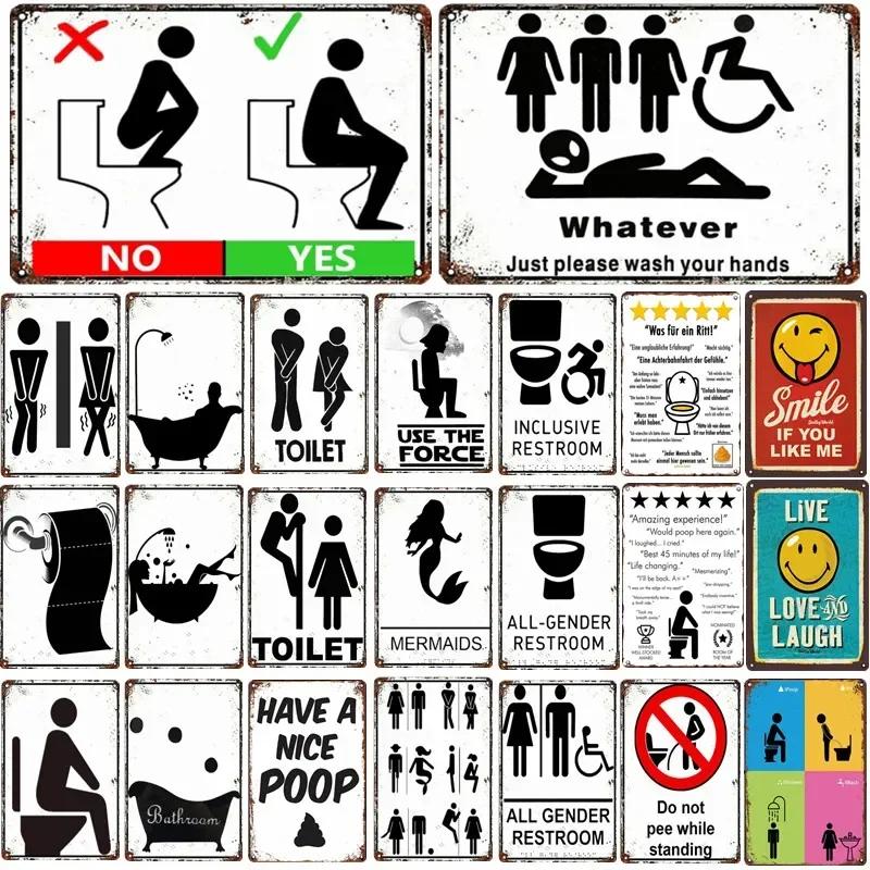 Toilet Sign Vintage Funny Metal Tin Signs Retro WC Lavatory Toilettes Wall Poster Art Bar Club Bathroom Toilet Wall Decor