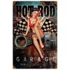 Vintage Pinup Girl Hot Street Rods Garage Full Service Route Auto Mechanics Metal Tin Sign for Rural Wall Decor Retro Poster P