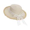 This lightweight straw hat features a wide brim and a flat top design, offering effective sun protection and breathability for summer beach outings. Crafted from durable paper straw, it measures 22 inches in circumference, combining elegance with functional sunshade. Ideal for seaside vacations or outdoor leisure, it is easy to maintain by wiping clean with a damp cloth.