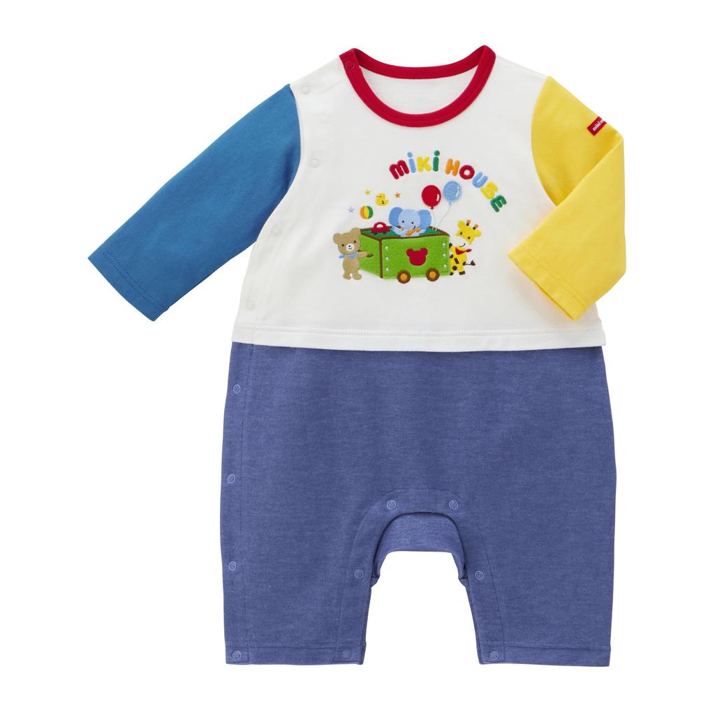 ☆ These Miki House coveralls and long-sleeved rompers feature a cute design featuring colorful logos and animals jumping out of toy boxes. The pants are made of popular stretch knit denim, which allows for easy movement, and are designed with room in the hip area. The comfortable material makes them suitable for year-round wear, and the side hook closures make them easy to put on and won't restrict the movement of active children. With a 3/4 inseam, these Miki House coveralls are perfect for wearing from early spring. They're also recommended for baby shower preparations and as a baby shower gift.