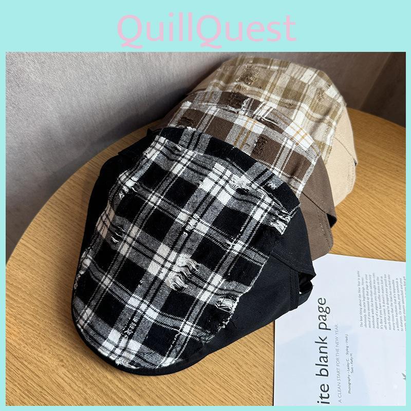 Retro Plaid Patchwork Newsboy Cap For Women Spring Summer Fashion Sun Protection