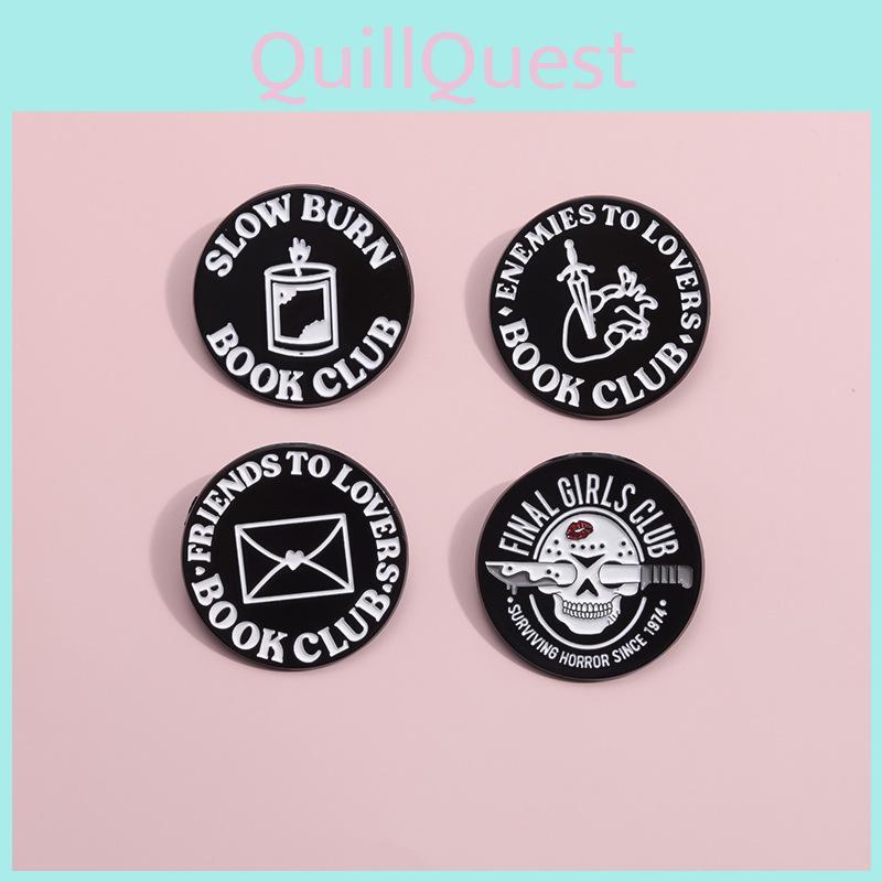 Creative Black Round Badge Unique Letter Design Punk Style Brooch Pin For Fashion Lovers