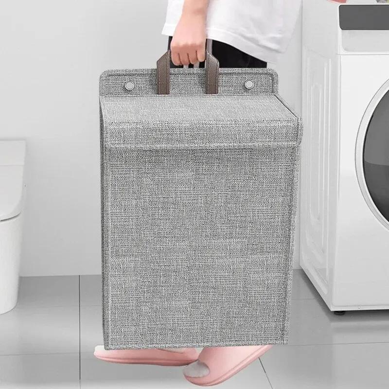 Foldable Adhesive Laundry Basket Hamper, Multifunctional Punch Free Wall Hanging Washing Clothes Mesh Hook Organizer