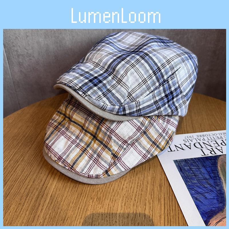 Vintage Plaid Cotton Linen Newsboy Cap For Summer Sun Protection
