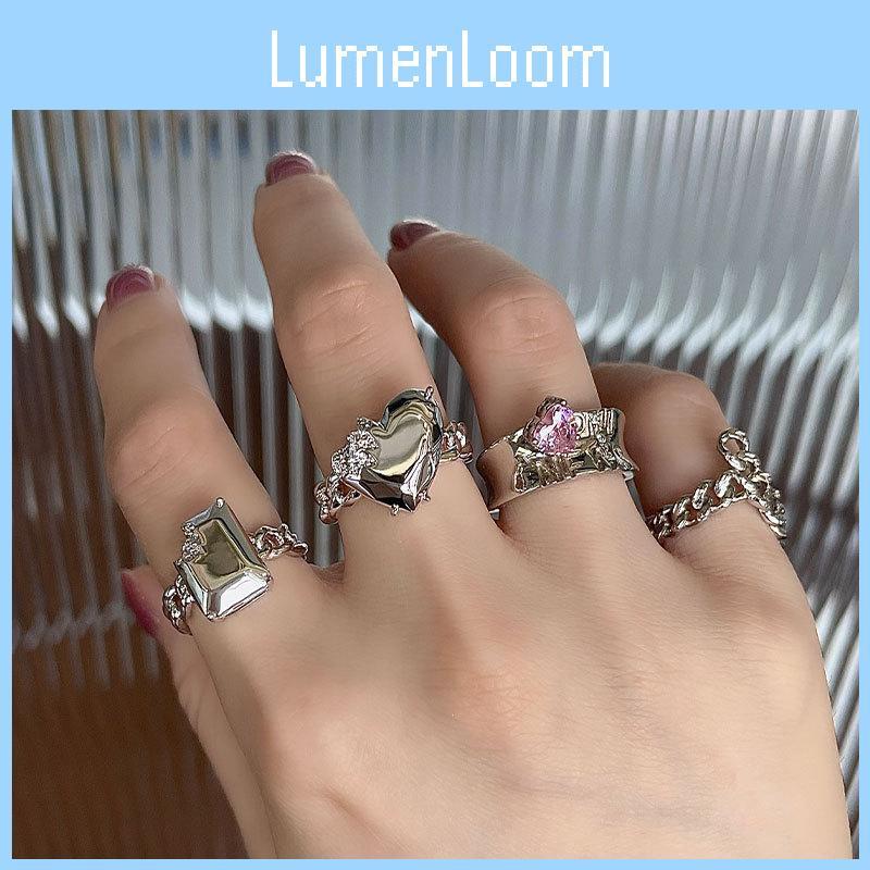 Elegant Korean Style Adjustable Heart Shaped Ring With Geometric Design For Women