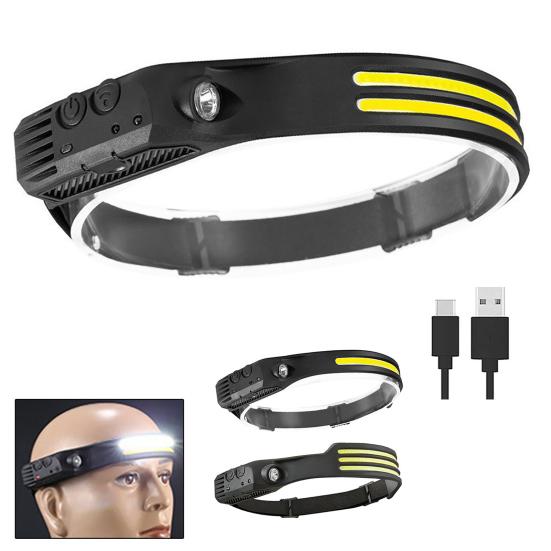 This rechargeable LED headlamp features an innovative hand-waving sensor, allowing easy one-hand operation for turning the light on and off. Equipped with a built-in high-capacity battery, it offers 2.5 to 8 hours of continuous use across five versatile lighting modes, fully recharging in just 2 to 4 hours through USB Type-C.