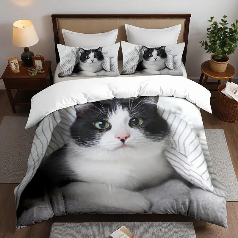 Creative Lazy Cute Cat Print Duvet Cover, High Quality Soft Bedding Set, Soft And Comfortable Quilt Cover, Suitable For Bedroom