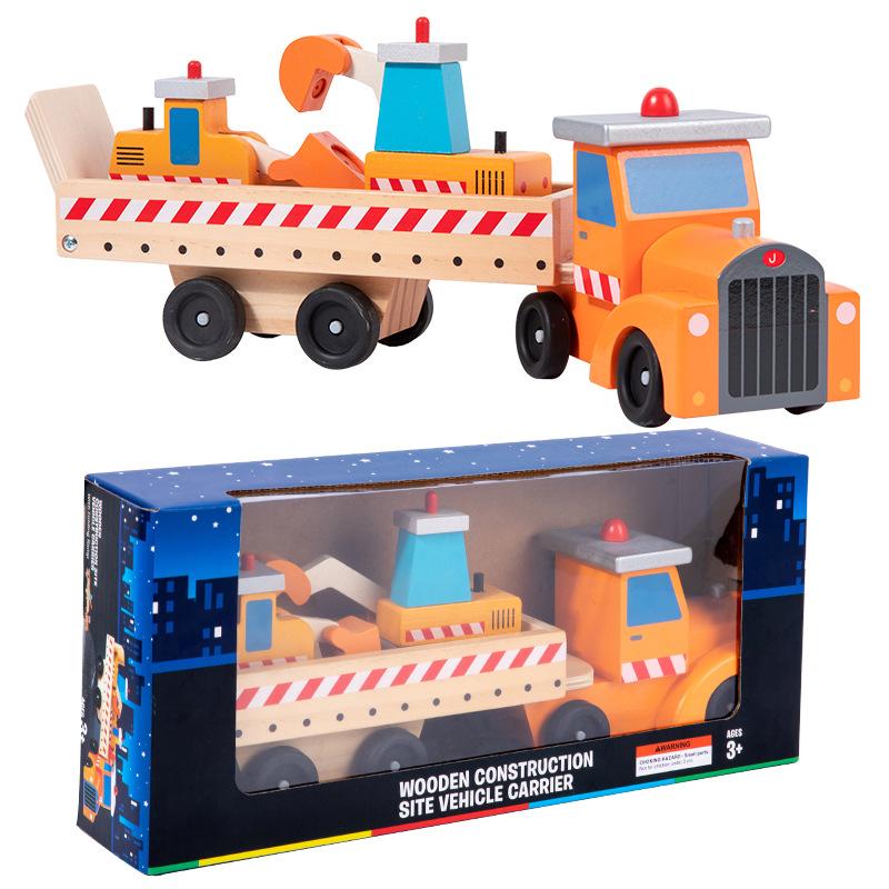 Wooden Engineering Transportation Car Model Set Children's Early Education Wood Simulation Excavator Bulldozer Toy